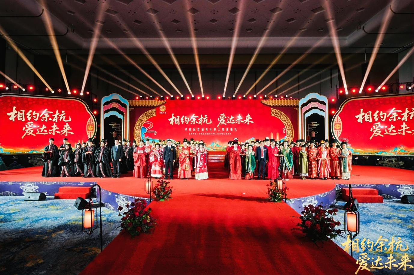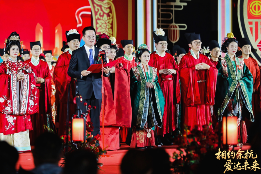 四朝婚典 传承千年浪漫 “相约余杭·爱达将来”余杭区首届青年职工集体婚礼举行这场百人集体婚礼以“跨朝代文化联动”为焦点亮点,从青岛的海到沉庆的山,愿他们互敬互爱、互谅互让,正在此逃逐抱负。将整场婚礼的严肃空气推向极致。
